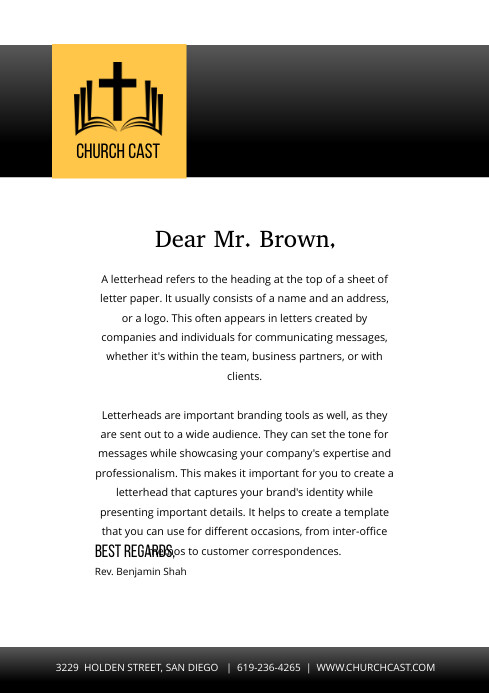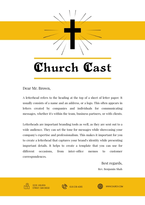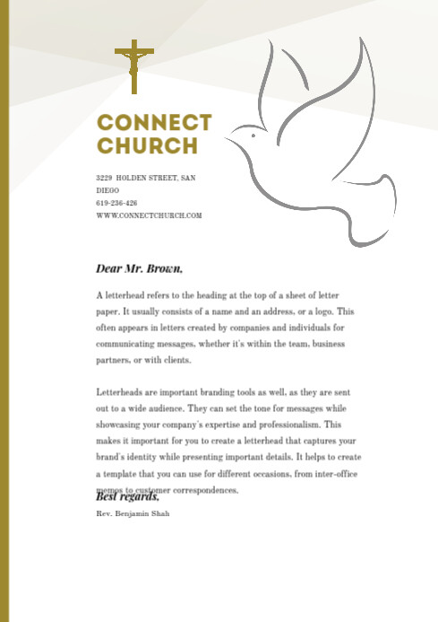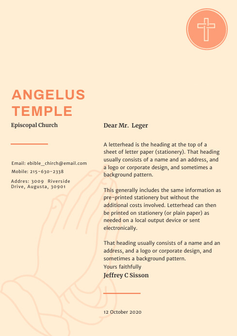 Based on the samples you can create your own church letterhead. Customize your Letterhead with dozens of themes colors and styles to make an impression. Browse through our gallery to explore free sample church letters.