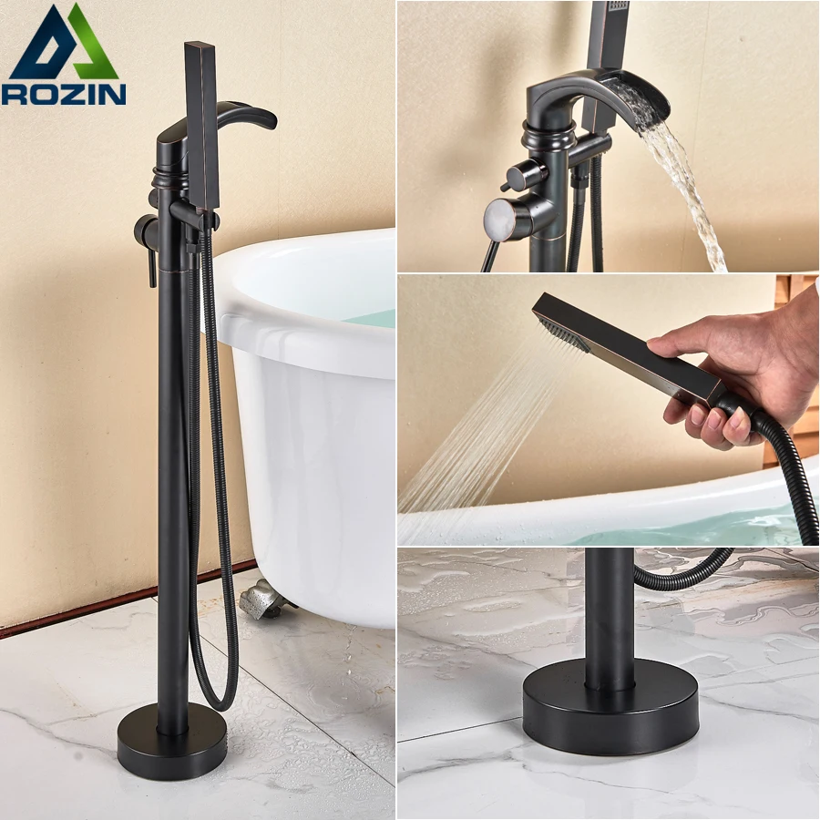 Black Bronze Waterfall Bathtub Faucet Single Handle Freestanding Tub Mixer Tap Floor Mounted Bath Shower Set With Handshower Bathtub Faucets Aliexpress
