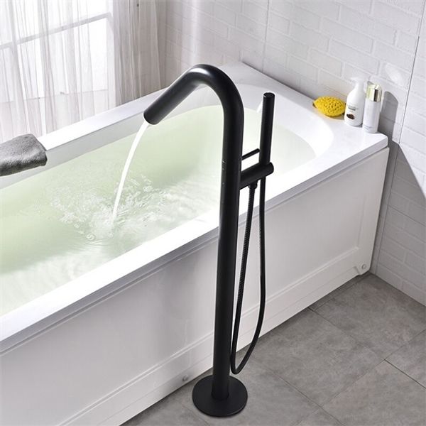 Senlesen Matte Black Bathroom Single Handle Freestanding Bathtub Faucet Floor Mounted Waterfall Tub Filler With Hand Shower Set Amazon Com