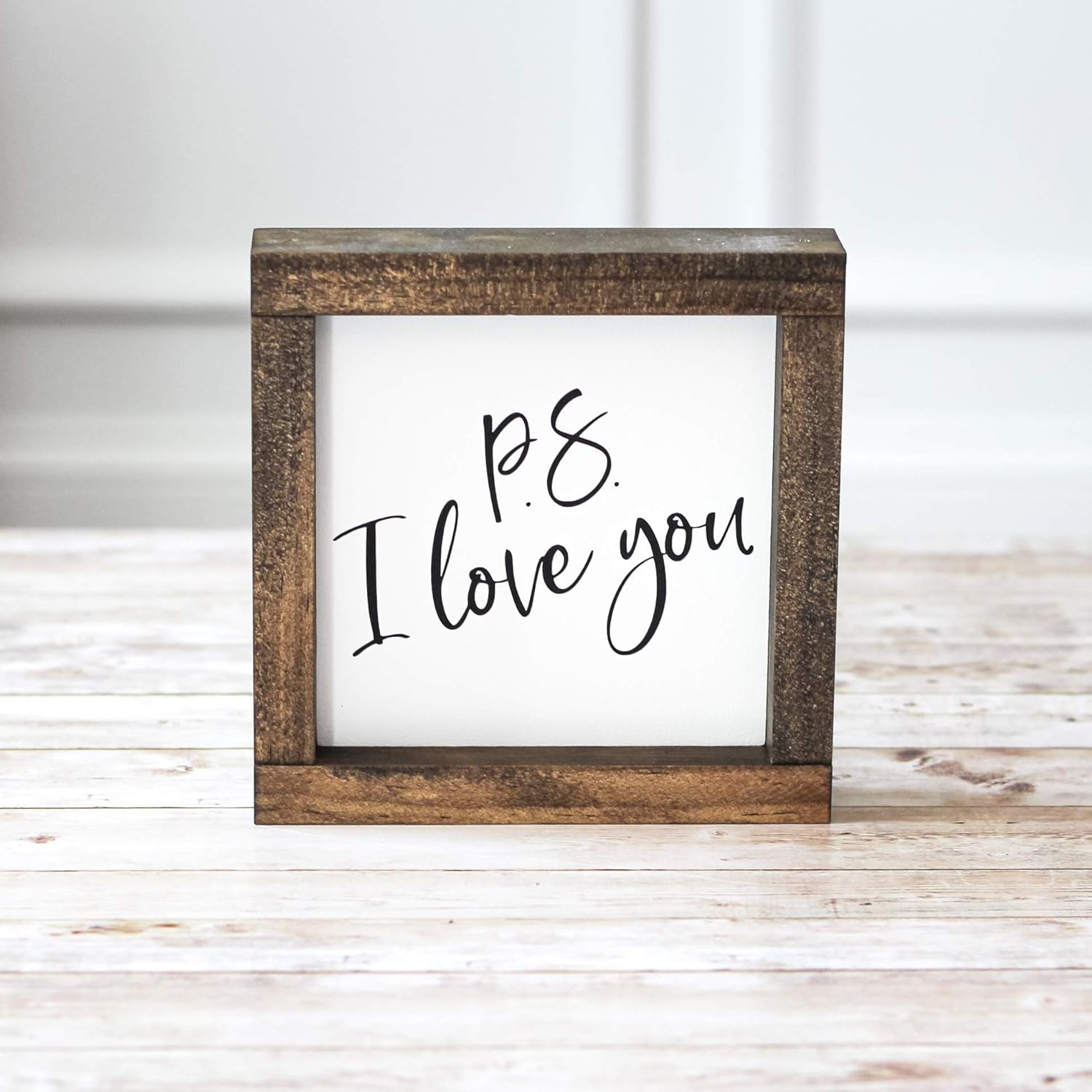 Amazon Com Ps I Love You Wall Sign Valentine S Day Gift For Her Black White Wall Decor 7 X 7 Inch Handmade