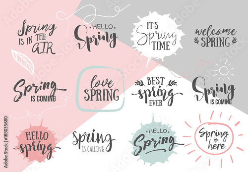 Set Of Inspirational Spring Romantic Handwritten Quotes Good For Greetings Posters T Shirt Prints Cards Banners Vector Lettering Typographic Element For Your Design Stock Vector Adobe Stock