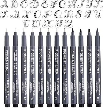 Amazon Com Hirsrian Hand Lettering Pens Black Fineliner Ink Pen Micro Pen Calligraphy Pens Set For Beginners Writing Sketching Artist Illustration Bullet Journaling 12 Size Office Products
