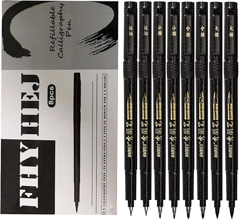 Amazon Com Hand Lettering Pens Calligraphy Brush Pen 8 Size Black Markers Set For Artist Sketch Technical Beginners Writing Art Drawings Signature Water Color Illustrations Journaling Office Products